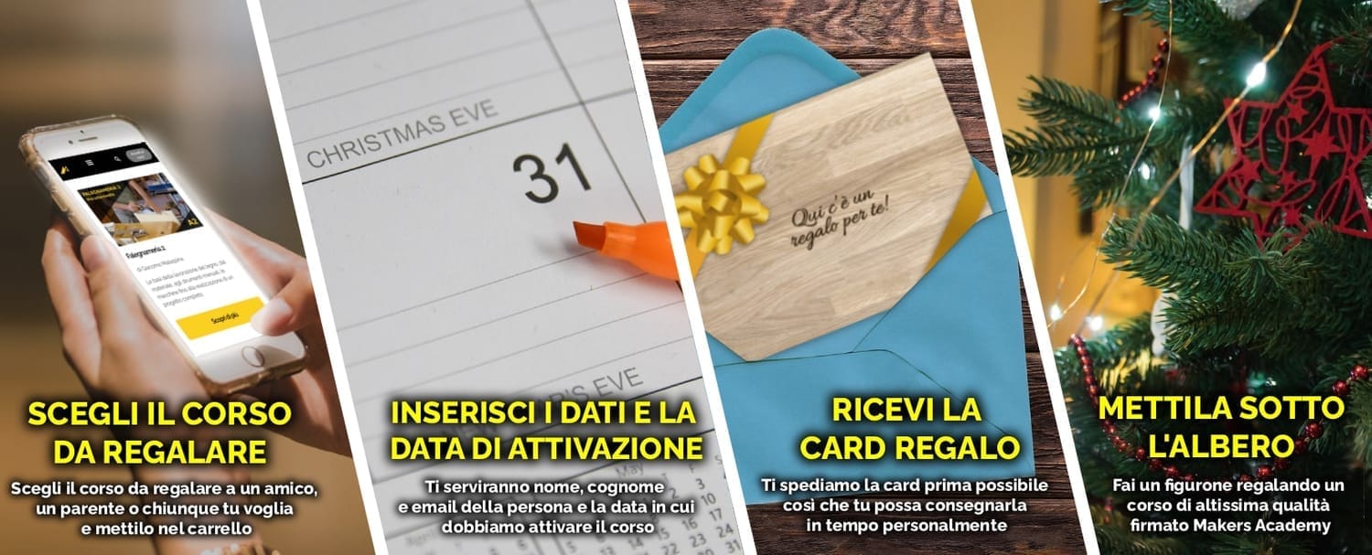 Si inizia dalle basi della lavorazione del legno per scoprire poi nozioni teoriche e lavorazioni pratiche.